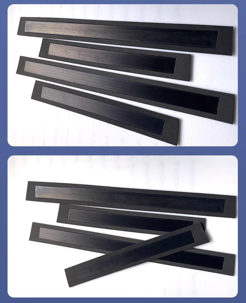 铁路弹性垫板是以三元乙丙橡胶为主要原料,具备较强的减震性、舒缓老化性、耐磨性、稳固性、抗高低温性的一种材料,主要用于限位凹槽的四周,弹性缓冲垫层的作用是缓冲车辆通过轨枕时,产生的高速震动和冲击,保护路轨和轨枕。适用于板式无砟轨道,为传递上部轨道结构的纵横荷载,底座设置凹槽,灌注自密实混凝土形成凸台;为缓冲作用在凸台和凹台上的纵横力,降低用于温度和收缩产生的束缚力,常在凹槽四个侧面安置弹性橡胶垫层。